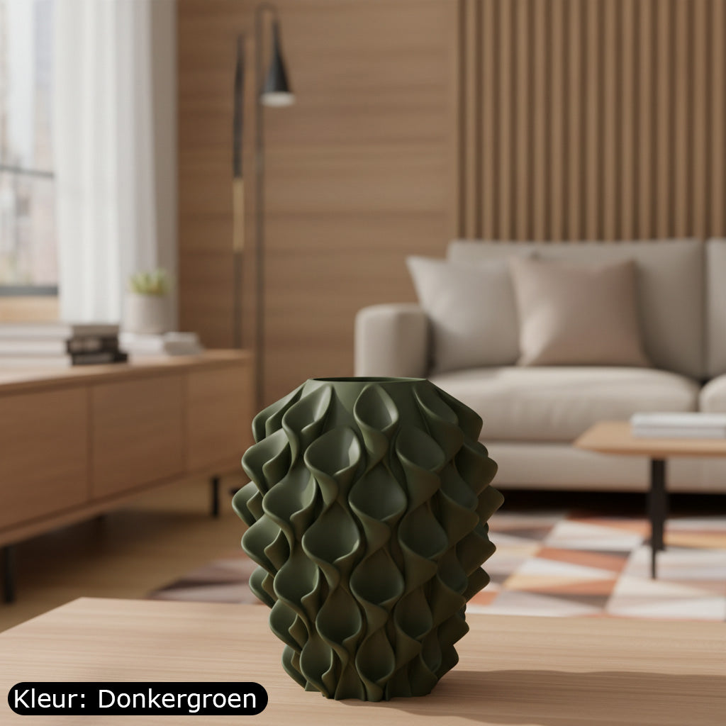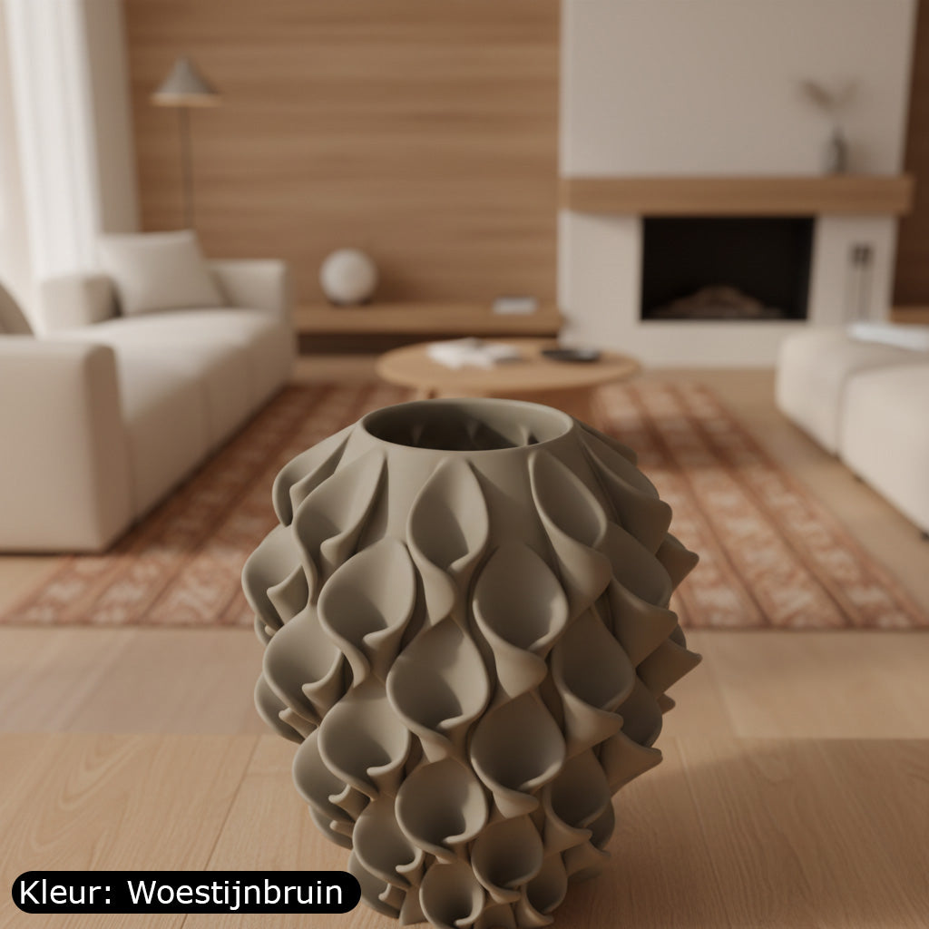 Deze 3D-geprinte vaas is een ode aan beweging en balans. De golvende vormen vangen het licht en brengen artistieke rust in elke ruimte. Seravasa is niet zomaar een vaas, maar een ontwerp dat de grens tussen design en kunst opzoekt. Perfect voor droogbloemen, zijden takken of gewoon als blikvanger op zichzelf. Met zorg en aandacht geprint in de studio van Onwies Shop.